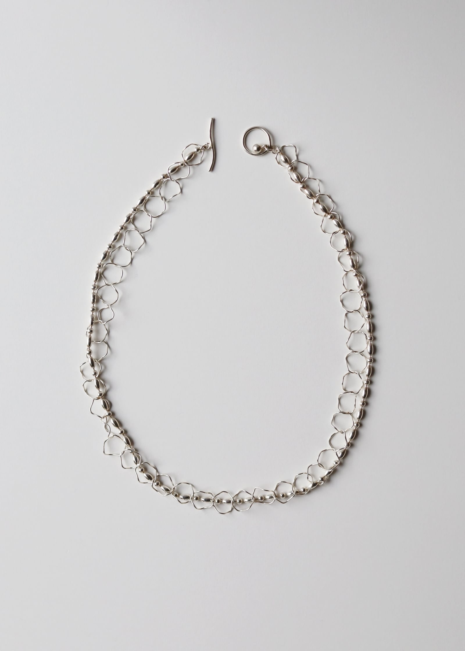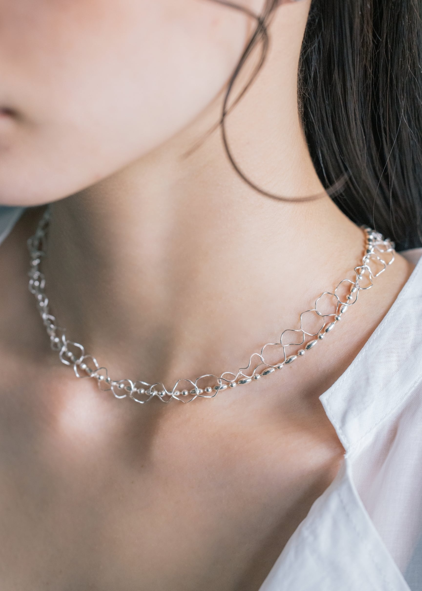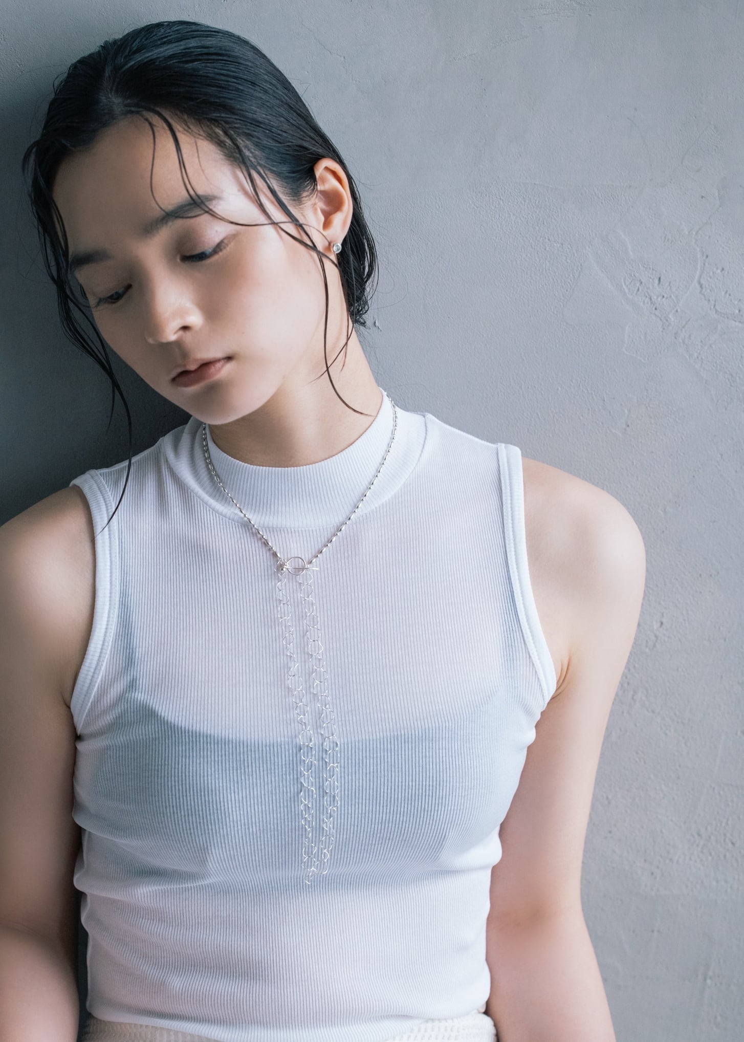 クラゲやプランクトンの透明感、水の動きをイメージしたネックレス。2連のネックレス、ロングネックレス、Y字ネックレスとしてマルチに着用が可能。