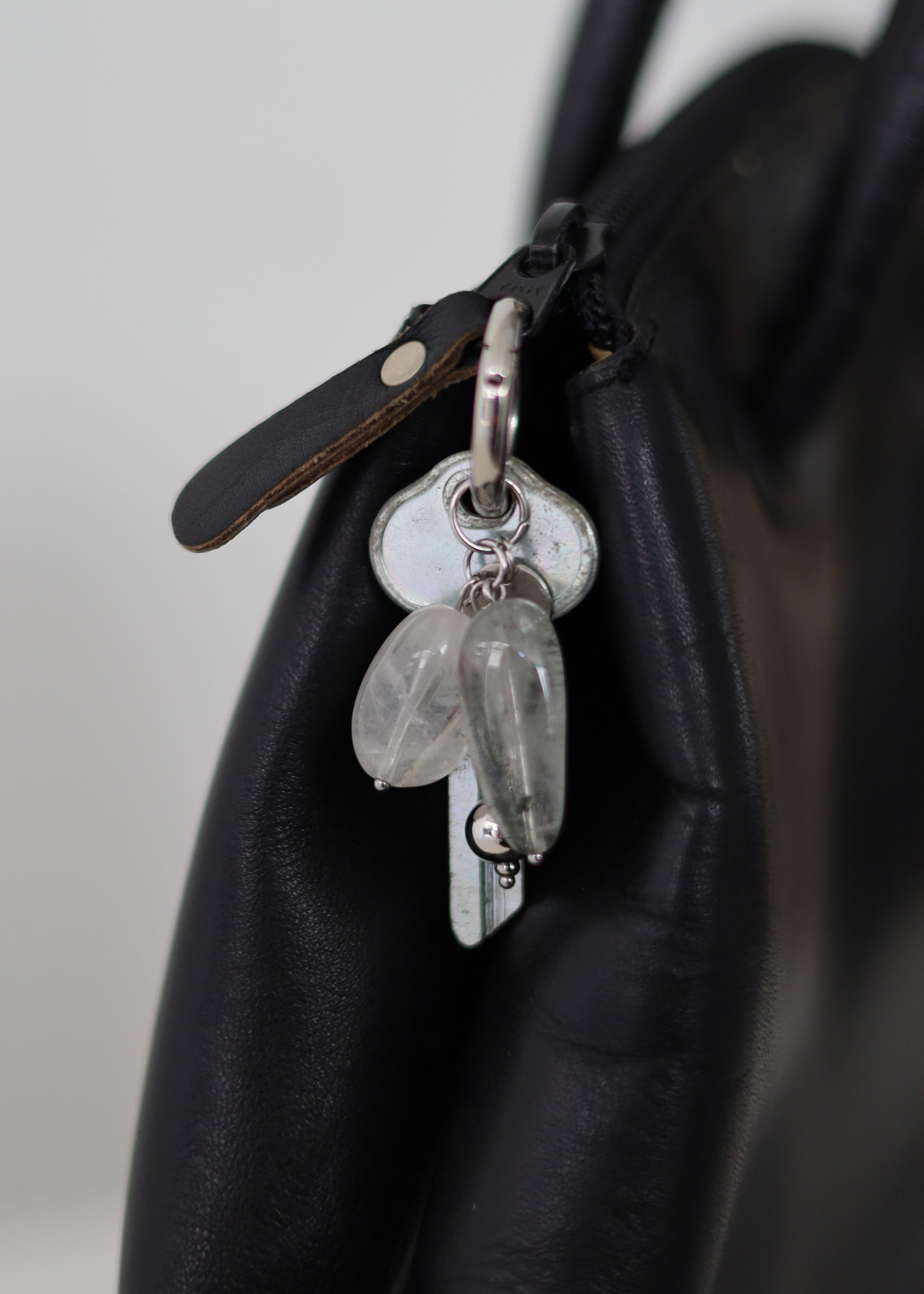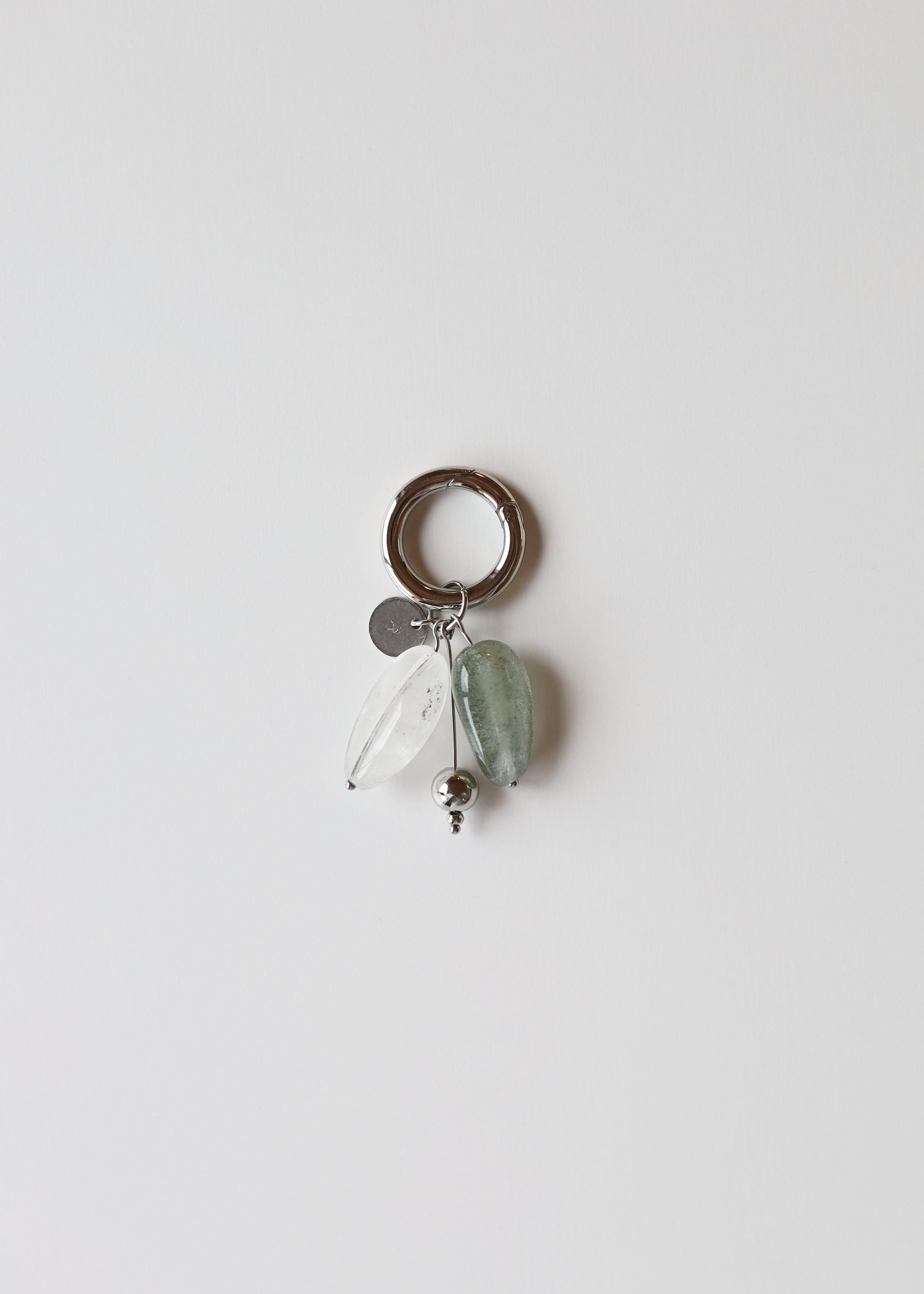 ガーデンクォーツを下げたキーチャーム。忙しい毎日に寄り添う小さなパワースポットのように、ふと触れた時に癒されるプロダクトです。