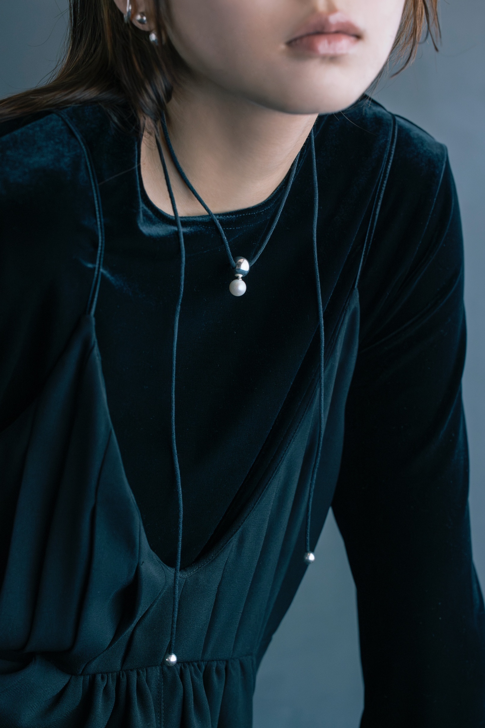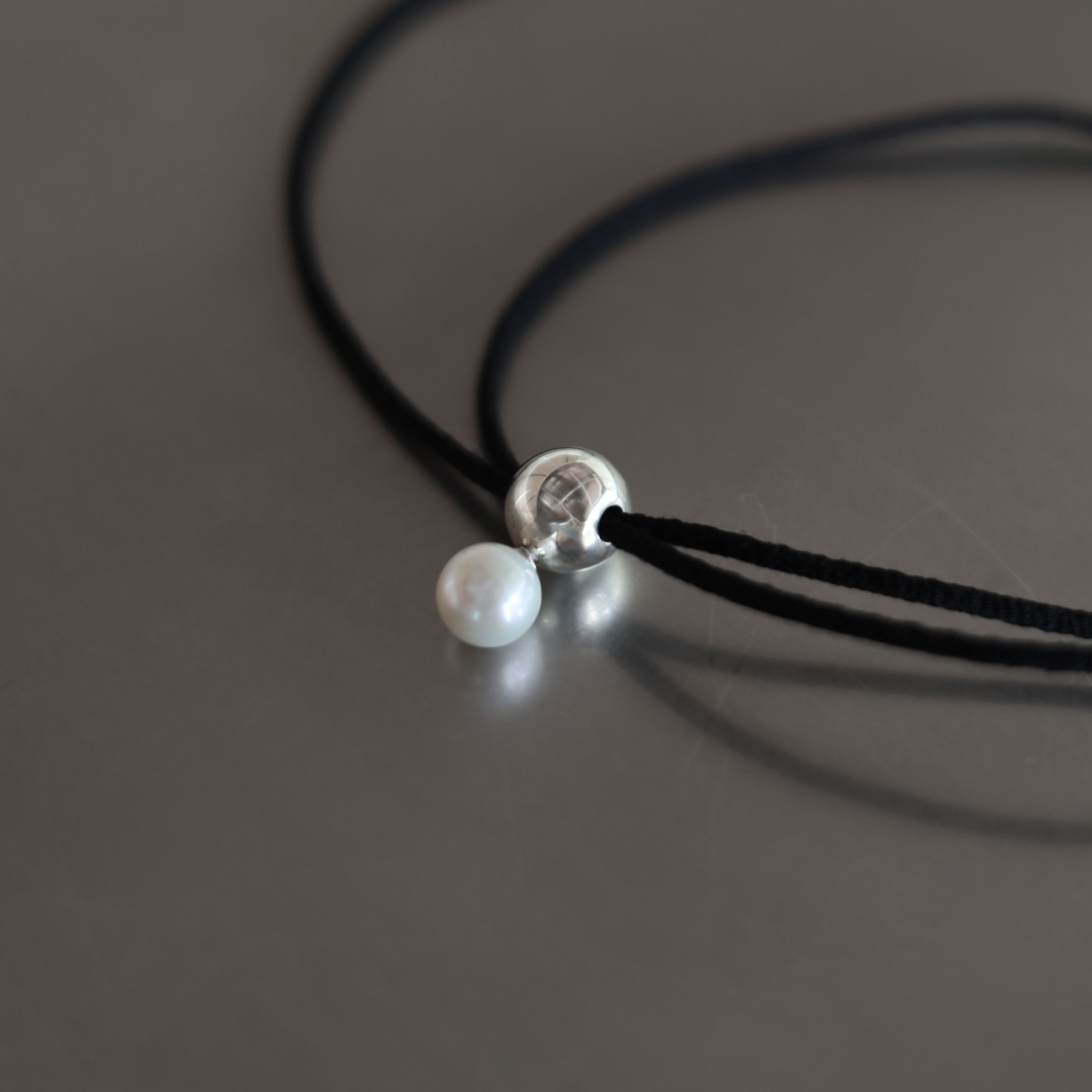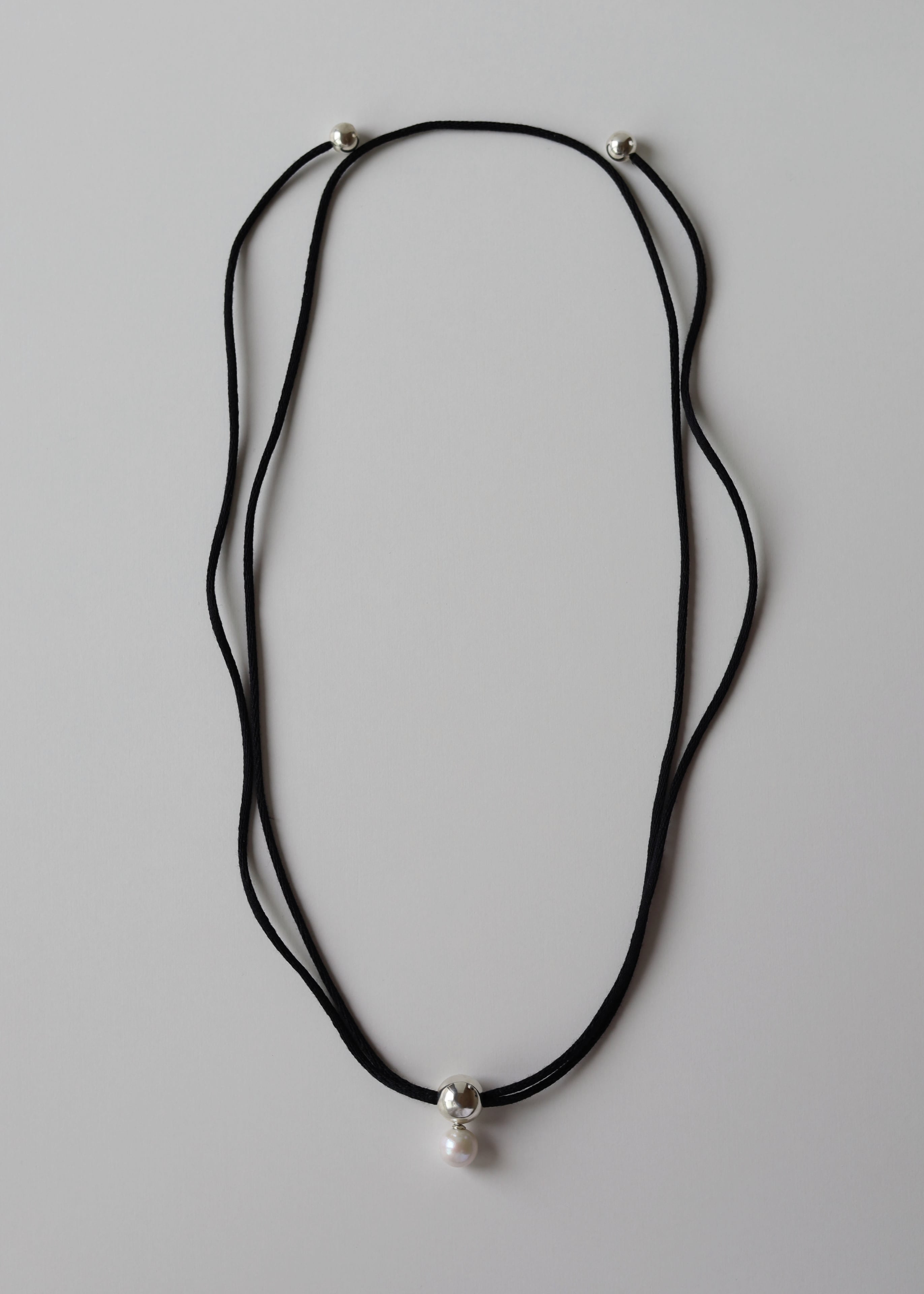 大粒の淡水パールをメインに、球体のパーツでデザインしたコードネックレス。着け方次第で様々なコーディネートにマッチするマルチウェイネックレス。コードはコットン100%の自然素材を使用。コードの先端は結び目が出ないように処理し、高級感のある仕立てに。