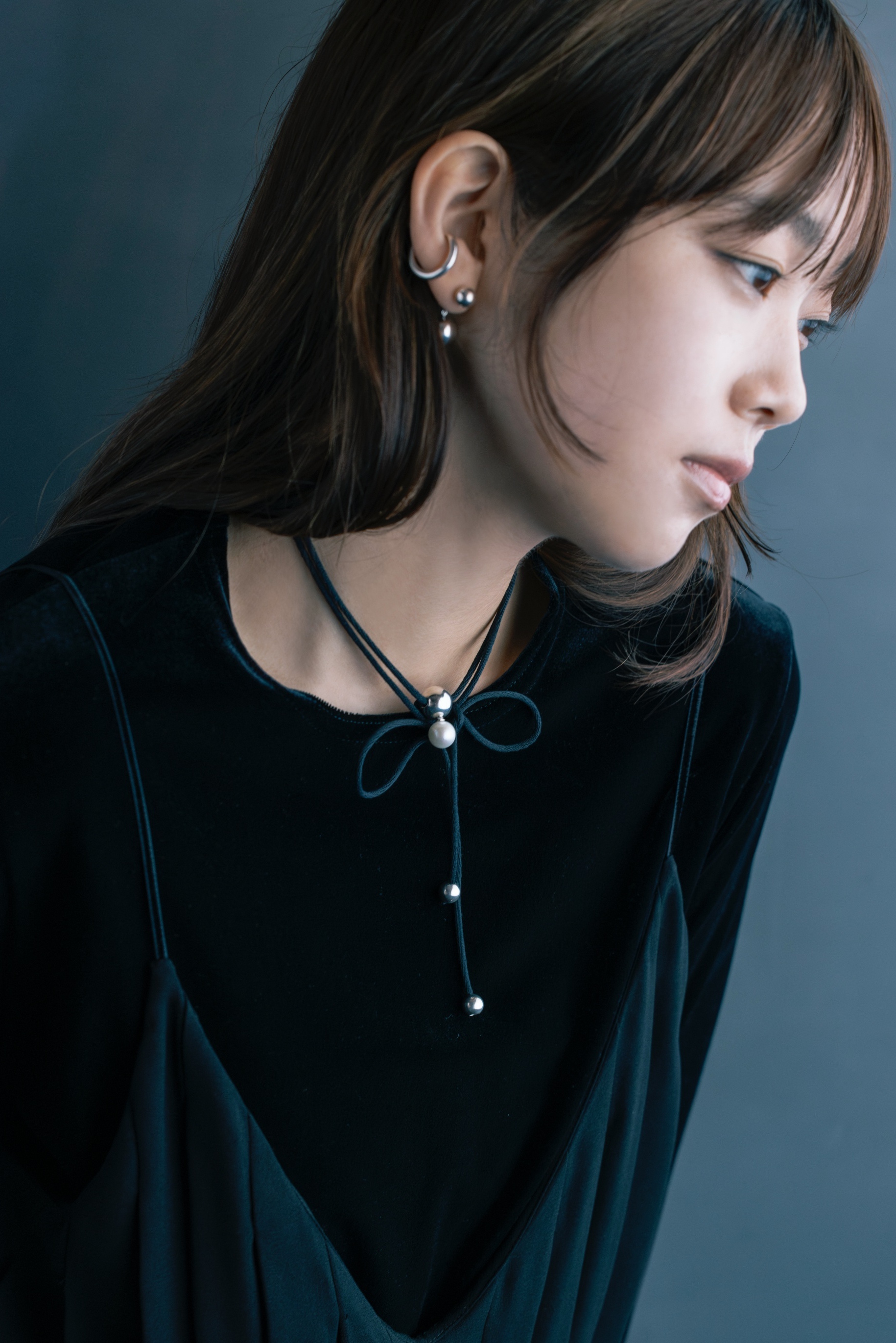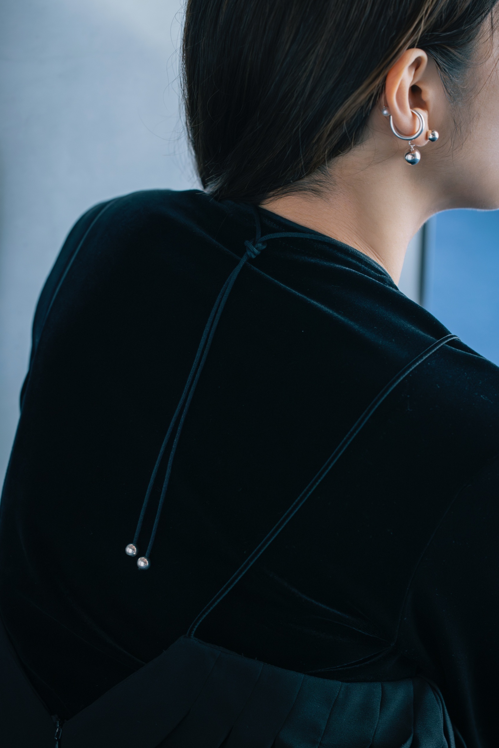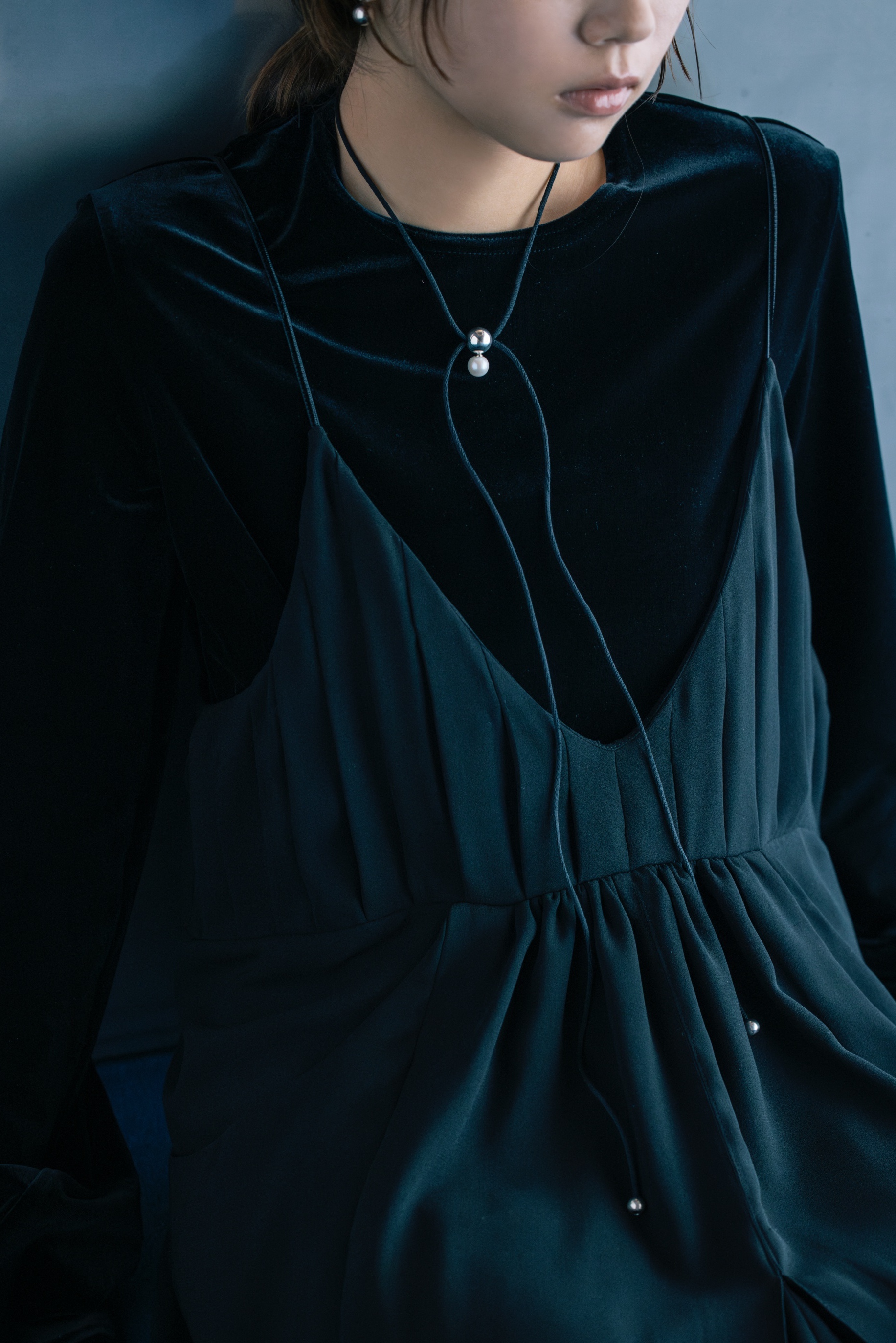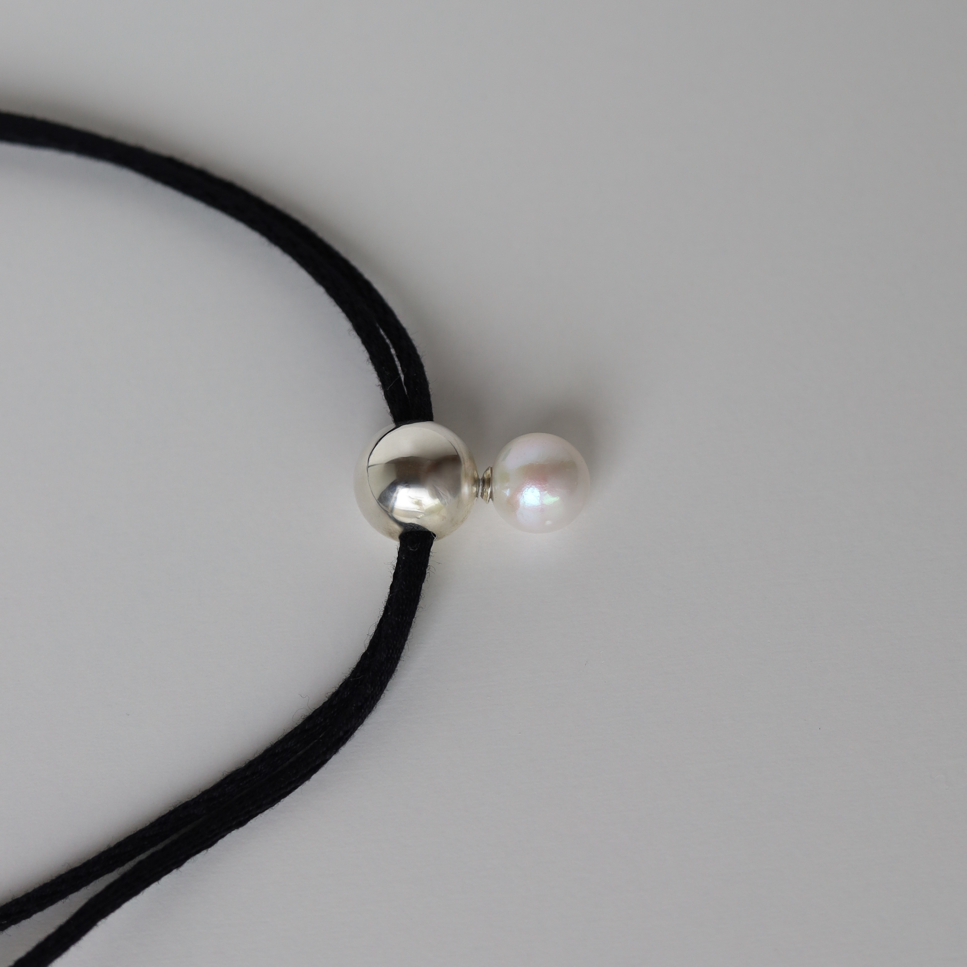 大粒の淡水パールをメインに、球体のパーツでデザインしたコードネックレス。着け方次第で様々なコーディネートにマッチするマルチウェイネックレス。コードはコットン100%の自然素材を使用。コードの先端は結び目が出ないように処理し、高級感のある仕立てに。