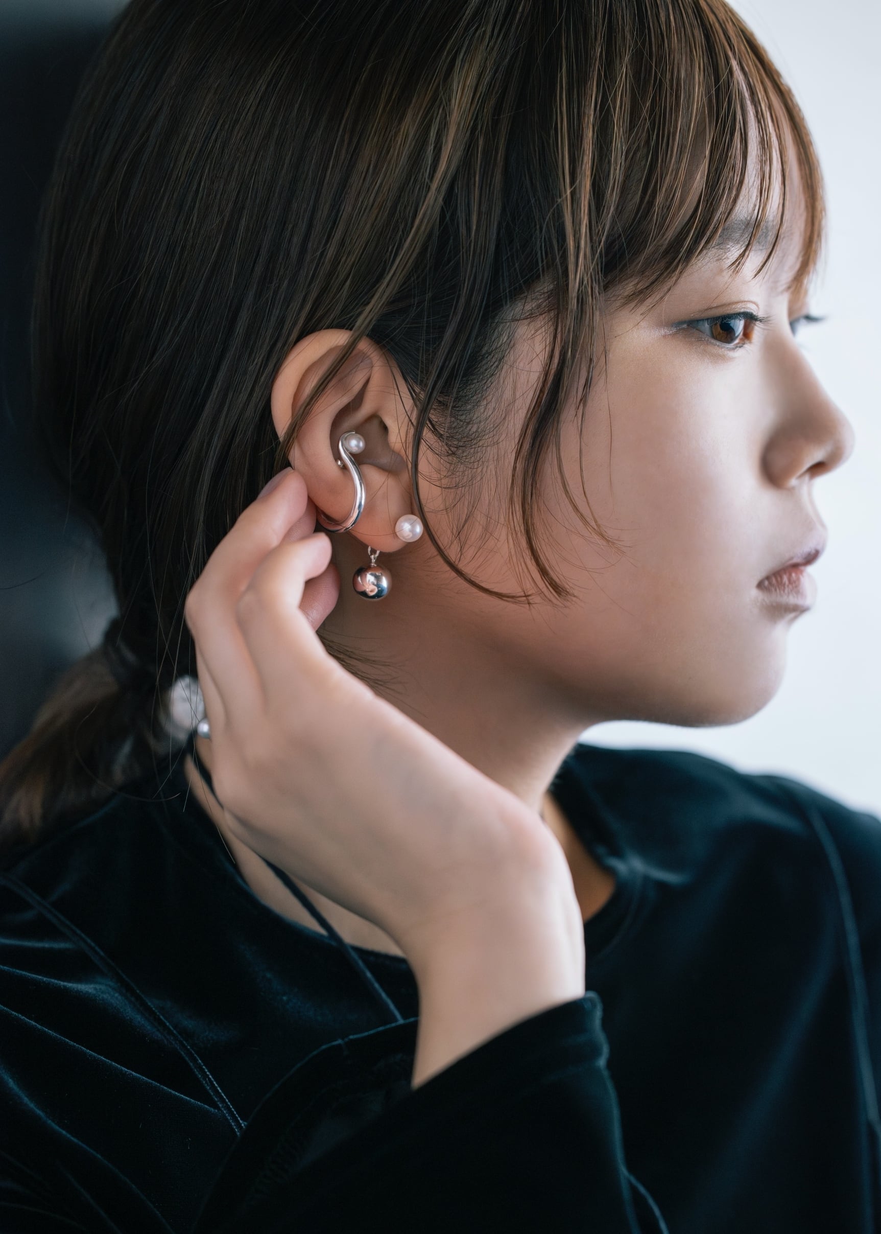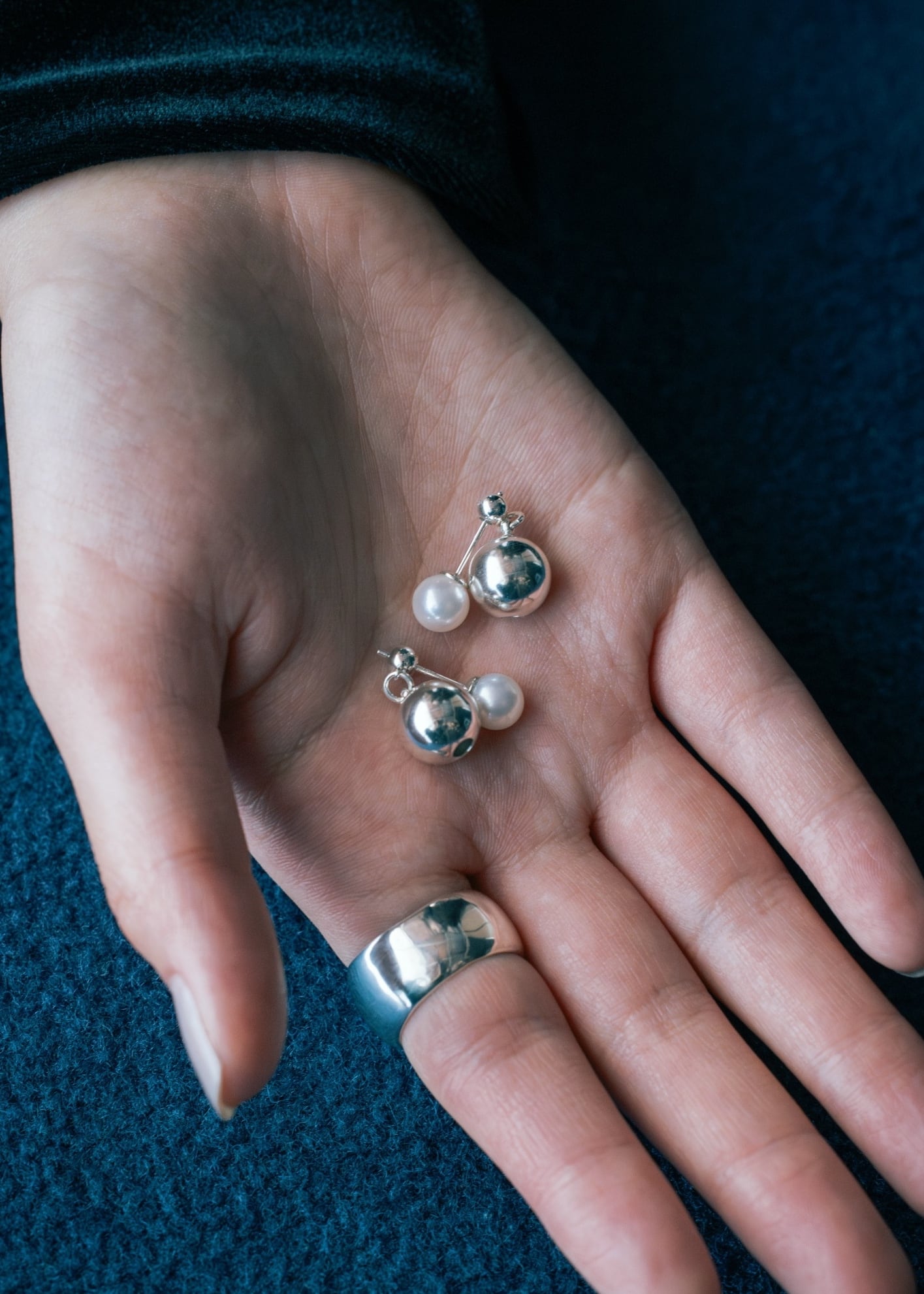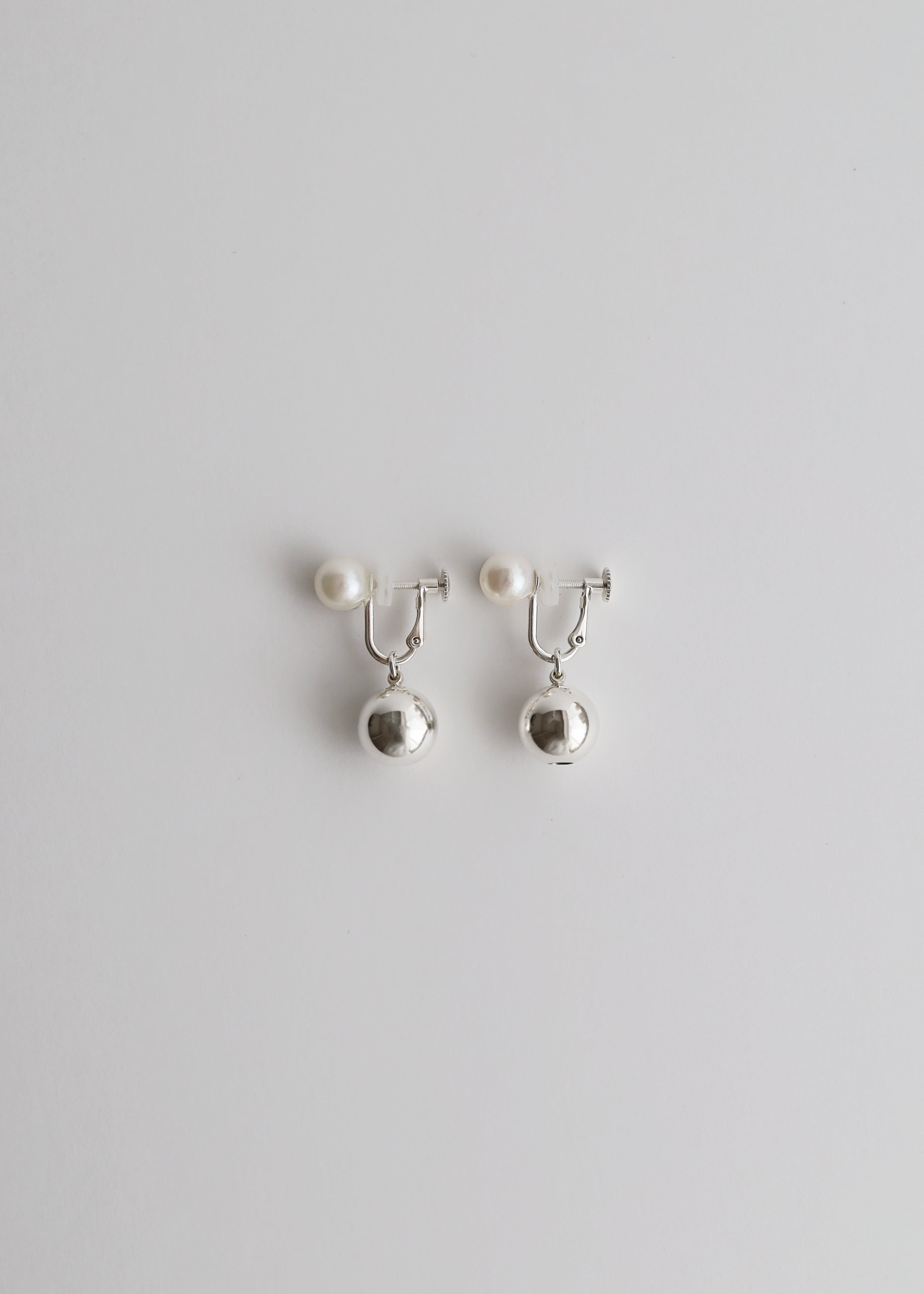 国産あこや真珠とシルバーボールを並べ、程よいバランスと揺れ感のあるデザインに。オケージョンシーンでもシンプルになりすぎず、少しの個性を取り入れて楽しめます。ピアスはキャッチを変えることでシンプルな一粒ピアスとしても着用可能。