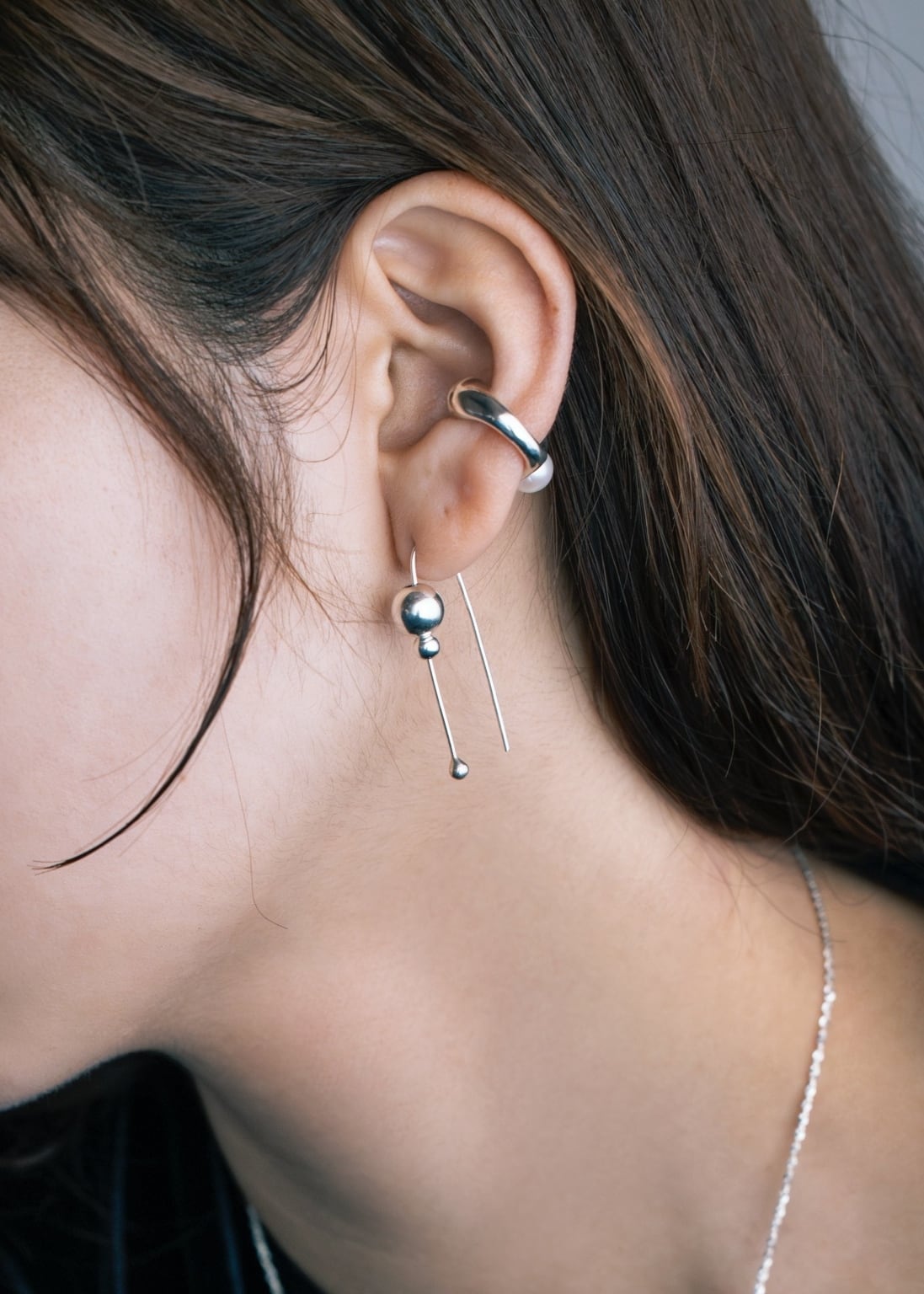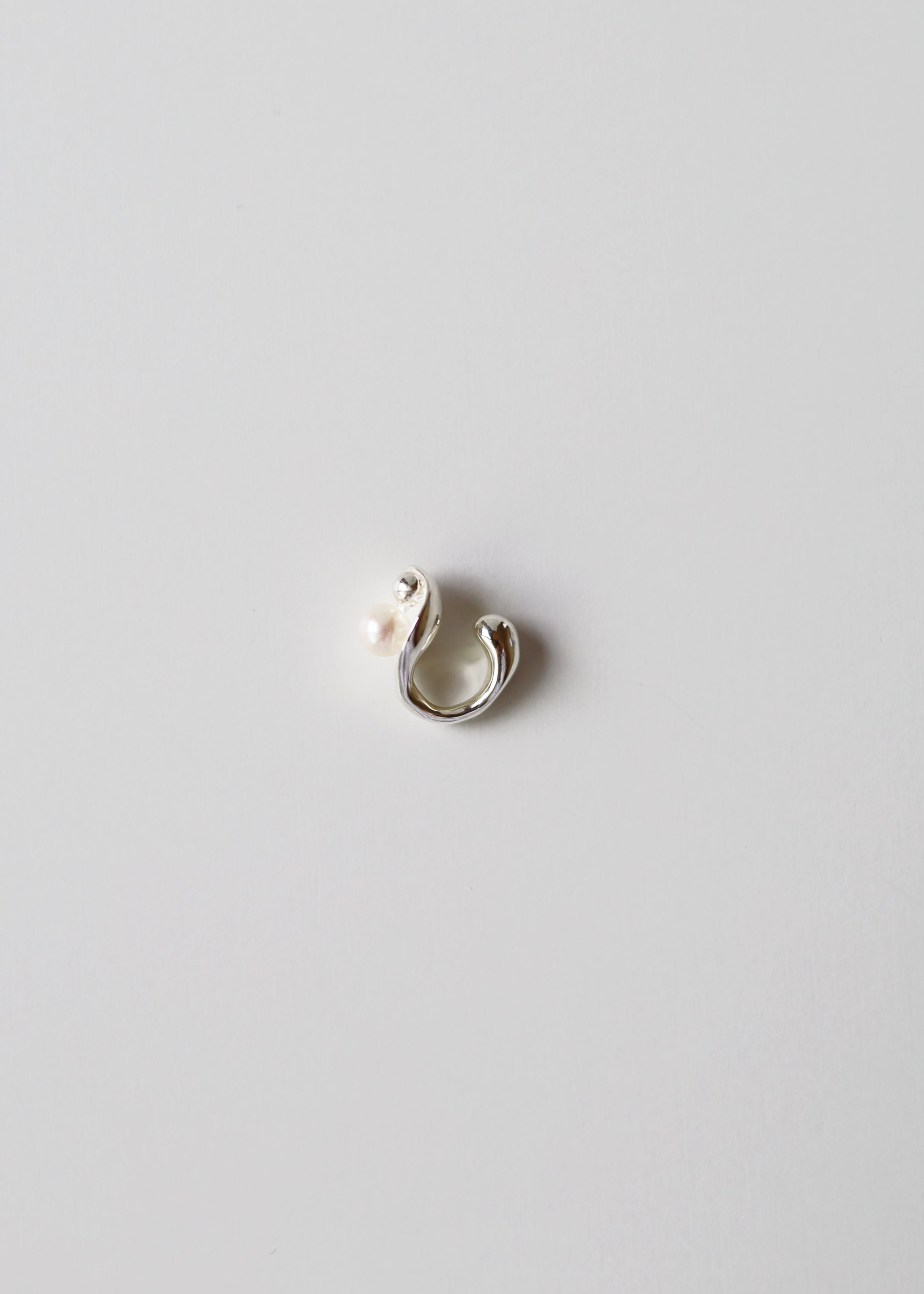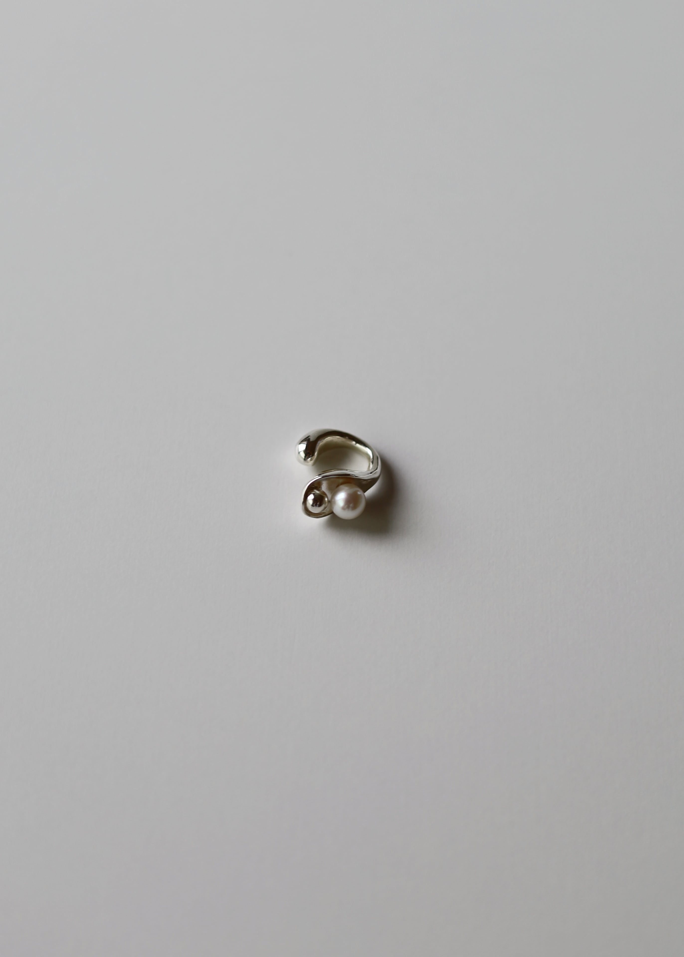 国産のあこや真珠をシルバーボールと共に、朝露のように配置したイヤーカフ。たっぷりとしたイヤーカフ部分は前後どちらも使えるデザインに。1つだけでも十分な顔周りのアクセントに。