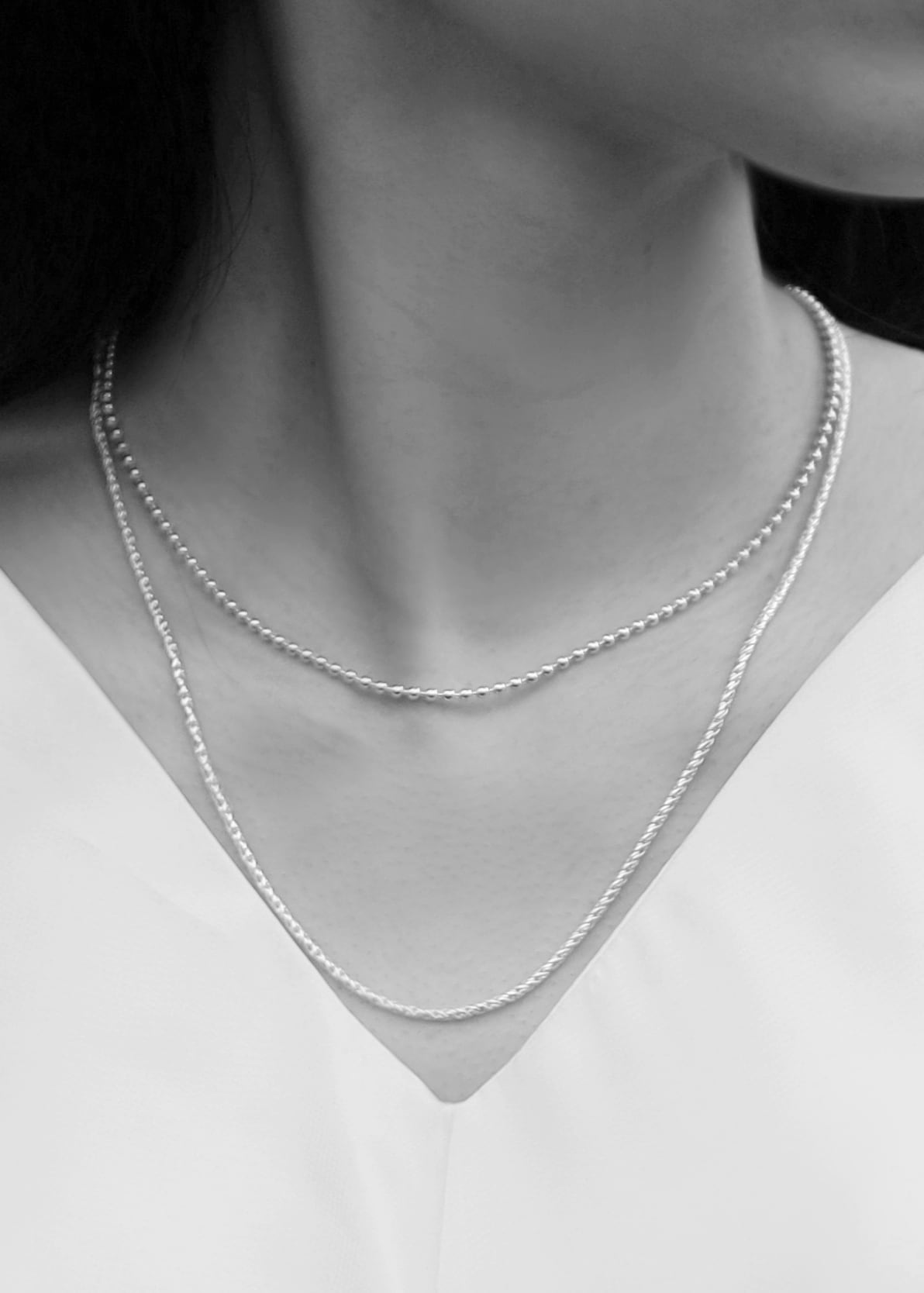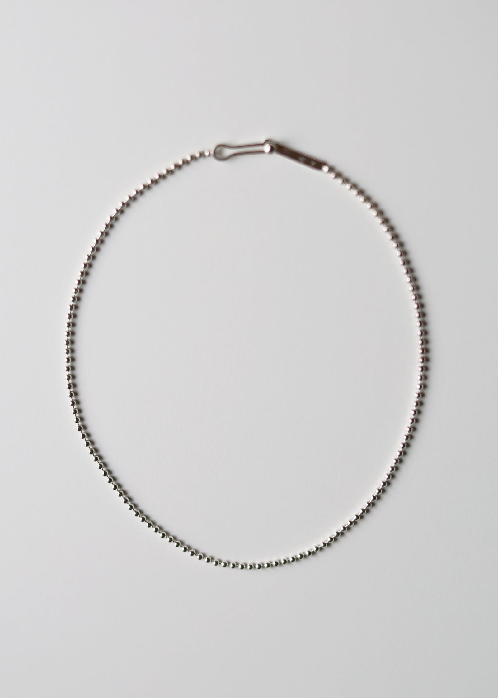 男女問わず着けられる存在感のあるボールネックレスチェーン。いつの時代のスタイリングにも馴染むデザインチェーンで制作。