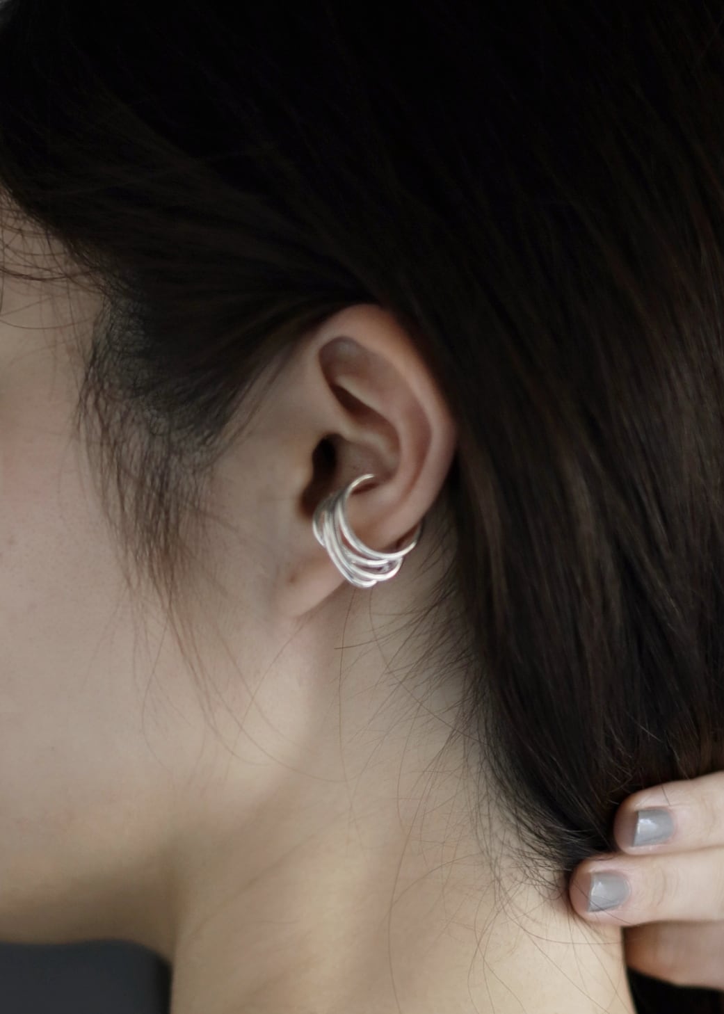 重なった線でデザインしたイヤーカフ。