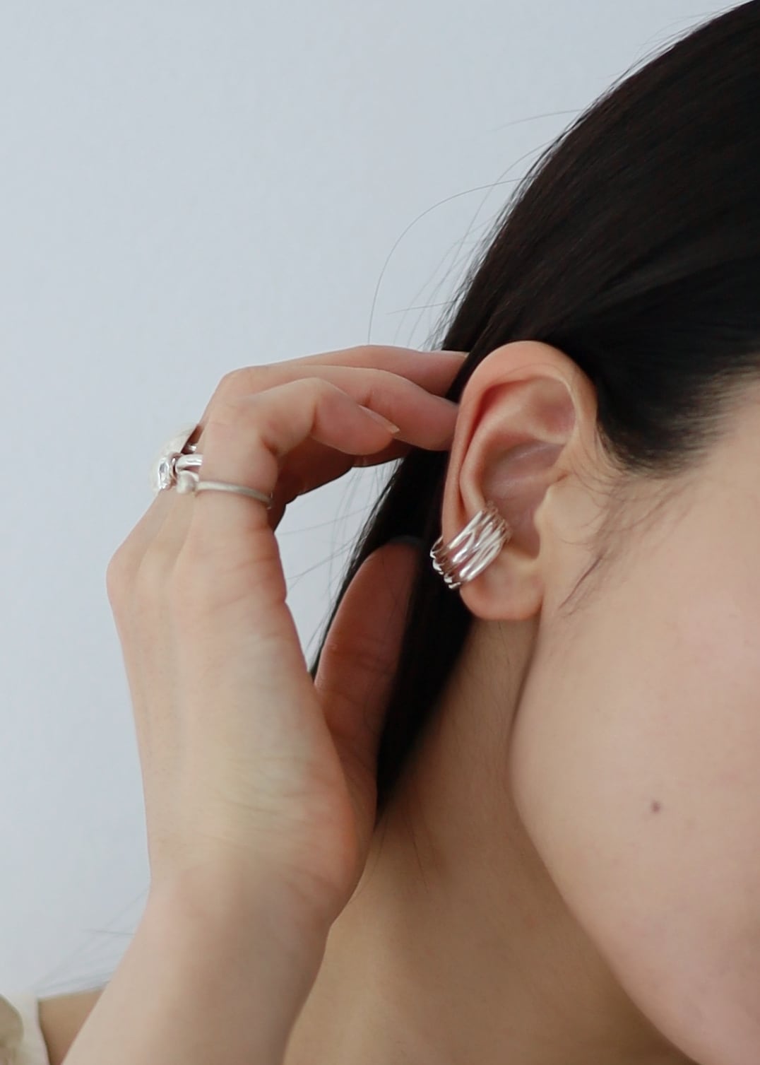 線同士に隙間があるため、見た目以上に軽やかに身につけていただけます。どんなスタイルにも合うため、初めてのイヤーカフとしてもおすすめです。