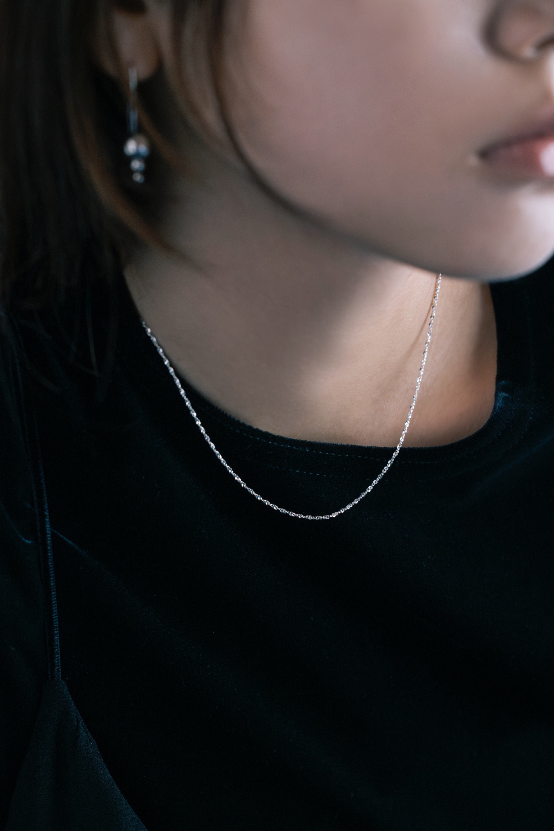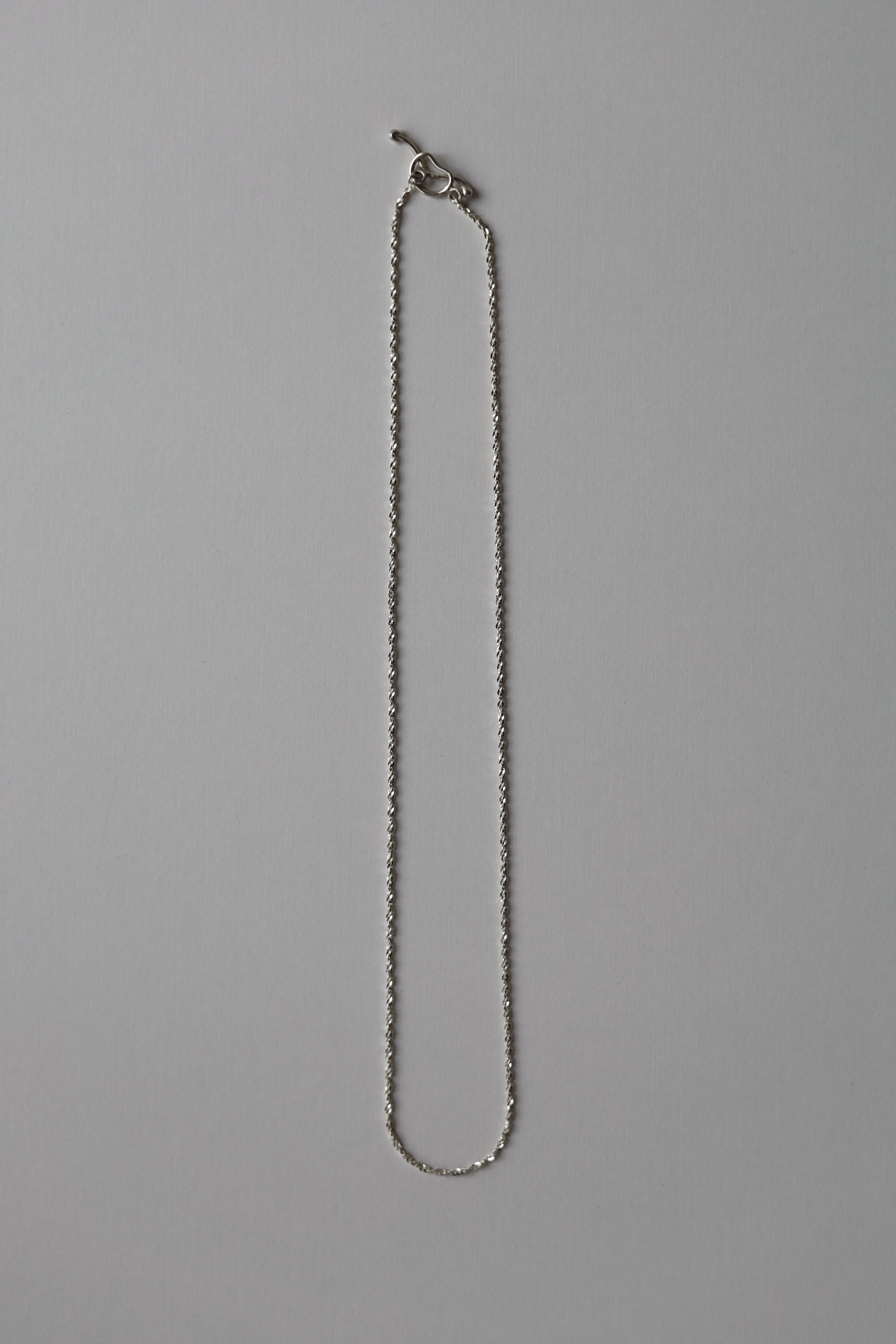 シンプルなチェーンネックレス。いつの時代のスタイリングにも馴染むデザインチェーンで制作。金具は一つずつ制作し、バーを通すだけで着用可能。チャームを通してもお使いいただけます。