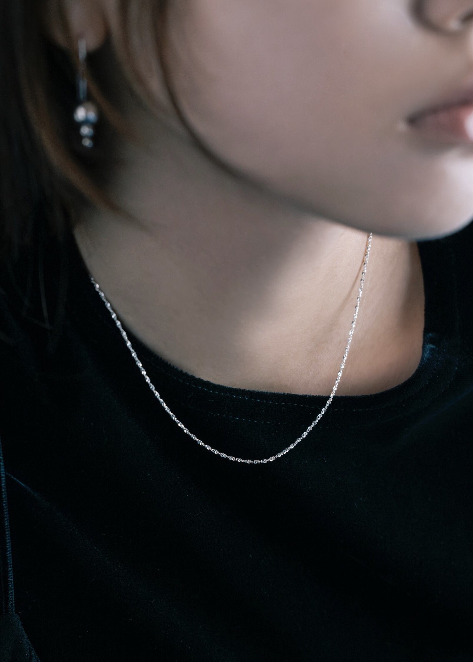 シンプルなネックレスチェーン。